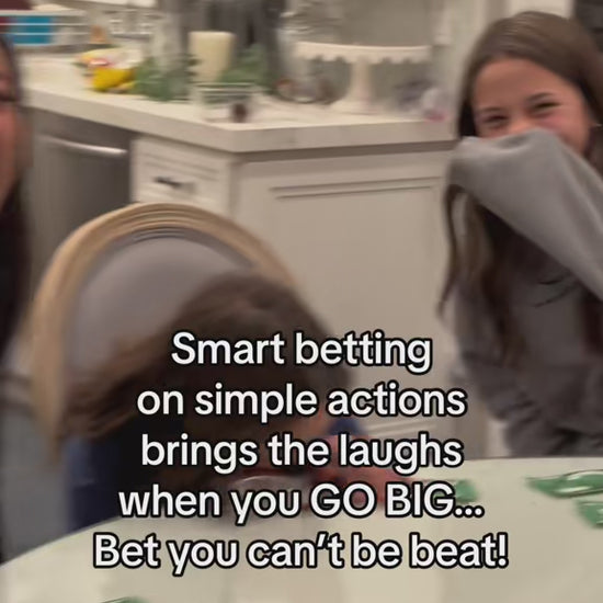 A high-energy party game for 3-8 players, ages 10 and up, where players bet big and take on simple but silly challenges that make this fast-paced and hilarious. It’s perfect for game nights, family gatherings, and parties that need a boost of excitement!